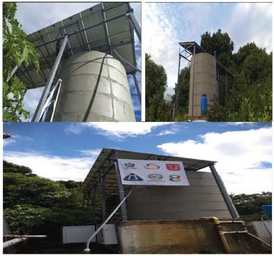 Para el requerimiento del agua de riego se dimensionó un total de 20 paneles en conjunto, un inversor de una capacidad de 5,0 kWp, para alimentar una bomba de 2 HP y una vivienda, con consumo promedio de 1,5 kWp, conectado a una red de baja tensión de 220V. Adicionalmente, el sistema contempla como elemento acumulador de energía la misma agua de bombeo ubicada en un tanque elevado, en reemplazo de las baterías convencionales. Esta alternativa de almacenamiento de energía potencial representa un cambio en el sistema convencional de almacenamiento energético (energy storage) de tipo químico en sistemas solares, que representa incluso un incremento en la eficiencia del sistema, teniendo en cuenta que el propósito final es el suministro de agua.