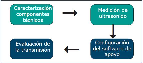 Obtener resultados de envío y recepción de datos por ultrasonido haciendo uso de periféricos y logrando una clasificación base, supone establecer una serie de pasos que permitan la configuración de herramientas técnicas y funcionales, con las que se pueda llegar a un resultado óptimo, para lo cual se consideraron las siguientes fases (Figura 1) en la ejecución de las pruebas: