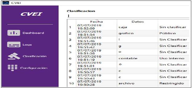 La figura 9 establece una pequeña muestra de los datos recolectados, asimismo y de acuerdo con una categorización básica, se le dio una etiqueta de posible clasificación dependiendo de la naturaleza del dato, para lo cual, dicha clasificación puede variar dependiendo de las condiciones de cada organización.