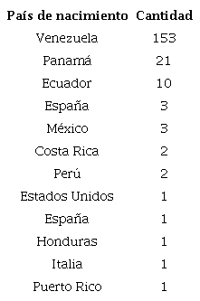 De los 199 funcionarios nacidos en otros países diferentes a Colombia, el 77 % son de Venezuela, el 11 % de Panamá, el 5 % son de Ecuador, mientras México y España reportan cada uno un 2 %.
