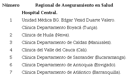 La Dirección de Sanidad es la encargada de prestar el servicio integral de salud en las áreas de promoción, prevención, protección, recuperación y rehabilitación a personal activo y de la reserva activa; cuenta con una red integrada de servicios de salud compuesta por ocho subredes, una por cada Regional de Aseguramiento en Salud, como se muestra en la siguiente tabla.