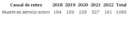 Aquí se presentan la muerte de los policías en servicio activo, en la Tabla 14 se relaciona la cantidad de policías fallecidos en los últimos cinco años.