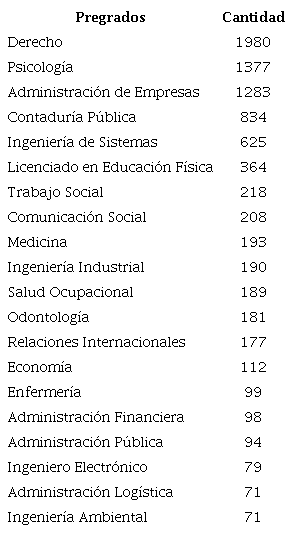 En la Tabla 6 se muestra los pregrados que más estudian los funcionarios.