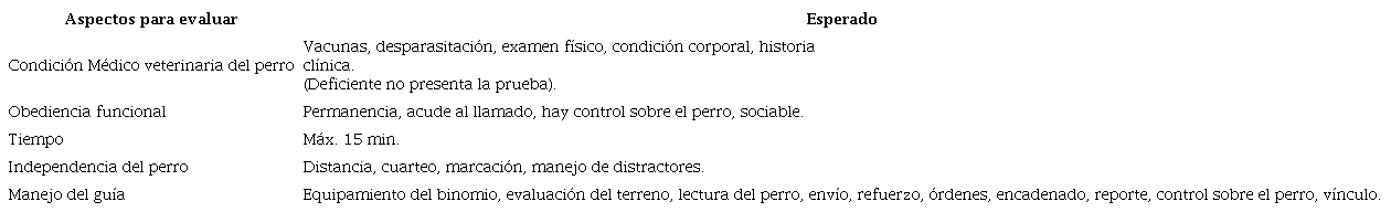 En países como Estados Unidos, la certificación de los K9SAR es emitida por la Agencia Federal para el Manejo de Emergencias (FEMA, por sus siglas en inglés), agencia que evalúa los siguientes factores: control adecuado de los comandos empleados en el animal, habilidades de agilidad del binomio, alerta de ladridos enfocada para indicar un hallazgo vivo, persistencia en la búsqueda de víctimas vivas a pesar de las posibles temperaturas extremas, presencia de otros animales, comida, así como distractores auditivos y ambientales (Rooney et al., 2004), eso permite revisar la discriminación del olor objetivo (Ferry et al., 2019). Las directrices colombianas para la atención oportuna en emergencias requieren la lectura de un territorio específico antes de su abordaje para la comprensión de las dinámicas sociales implicadas con el fin de realizar un despliegue en sitios complejos como Guaviare, Vichada, Catatumbo, entre otros (Ortiz-Arcos, 2021), evitando las posibles afectaciones a los equipos de intervención por parte de organizaciones criminales existentes en la zona donde ocurrió el evento.