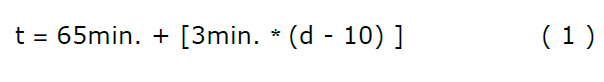 In equation (2), minimum tracking time shown should be 136.22 minutes, equivalent to 2 hours, 16 minutes approximately. However, the measurement taken in the field using the first capture method resulted in 2 hours and 40 minutes. It means that the field measurement was higher in time than the theoretical formula expressed, showing 34 minutes more than necessary.