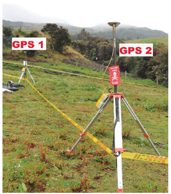 The first method of capturing the geographic coordinates was carried out by means of static survey, with the two GNSS dual-frequency receivers, determining two geodetic points (Georeferencing), GPS 1 and GPS 2, (Figure 2). The widespread use in cartography of dual-frequency receivers involves reducing ambiguity even in movement (Hasegawa & Yoshimura, 2003).