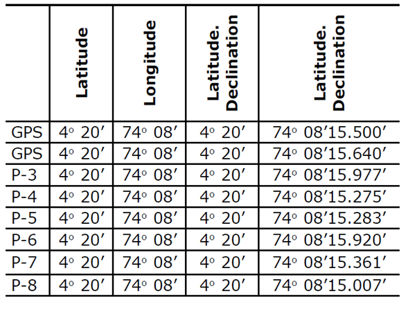 Therefore, the instruments used to capture the coordinates are described below in the materials section, later in the methods section a description is set forth of how the field measurements of the coordinates were made, to then identify the differences between the coordinates obtained for the same vertices but with different methods in instruments, which allows discussing the capture that is currently done in the field of action against mines.