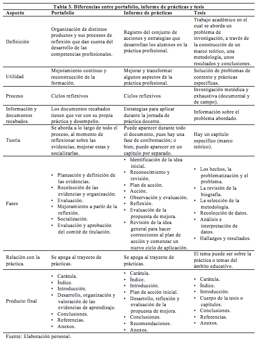En el marco de las escuelas normales, el portafolio de evidencias como modalidad de titulación se diferencia del informe de prácticas y la tesis. A continuación se describen dichos conceptos.