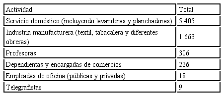 Como puede observarse en la tabla 1, la mayoría de las mujeres se dedicaban a prestar servicios domésticos, estas mujeres eran por lo regular mujeres pobres, con escasa instrucción; ocurría lo mismo con las trabajadoras manufactureras, solo que su situación era más vulnerable por las excesivas jornadas de trabajo, las condiciones insalubres de los talleres y fábricas y los precarios sueldos.[1]