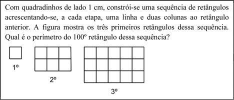 Com efeito, espera-se que os sujeitos concluam que há 100 quadradinhos de altura e 199 de base. Assim, o seu perímetro, é: