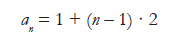 Realizando a operação distributiva, este modelo também pode ser escrito como: an = 1 + 2n – 2, que resulta em an = 2n – 1.