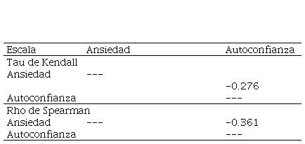 Índices de correlación entre ansiedad y autoconfianza