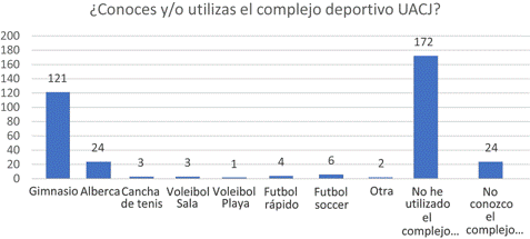 A la par de los anteriores datos, uno de los primeros cuestionamientos para la comunidad estudiantil del ICB trató sobre su conocimiento de la existencia y proceso de algún programa de actividad física y/o deporte en la UACJ-ICB, además de indagar si se conocía el complejo deportivo de la UACJ, y, dado el caso, si se hacía uso de sus instalaciones.