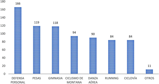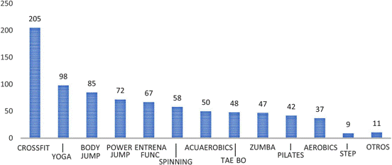 De tal forma, de las disciplinas fitness (Figura 3) el crossfit fue la más mencionada, con 205, seguida del yoga con 98 y el body jump con 85.