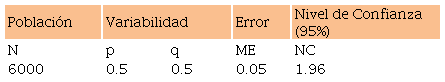 La fiabilidad del instrumento fue determinada por la fórmula estadística que aparece en la Tabla 1, con base en el nivel de confianza.