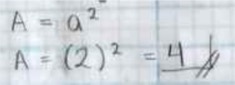 En el grupo de los 16 estudiantes, M8I le otorga el significado de letra evaluada; esto es, en el proceso de trasformación solo toma en cuenta la figura geométrica del cuadrado, hace referencia a los signos institucionales para calcular el área de esta figura y finalmente le asigna un valor específico (ver Figura 4).