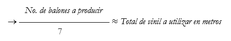 Por lo tanto, se identifica que al calcular el material a utilizar los productores usan de forma implícita una relación funcional, donde la cantidad de material necesario para la manufactura con respecto al vinil depende de la cantidad de balones a producir. Es decir, el modelo matemático que permite establecer la relación funcional es: