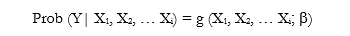 La RLB consiste en obtener una función lineal que, dados los valores de las variables independientes (Xi), estime la probabilidad de que se presente el evento de interés. El modelo permite una clasificación binaria, en la que las observaciones obtenidas pueden estar en uno de los dos grupos (Y = 1 o Y = 0). En este modelo de regresión se ajusta el logaritmo de la probabilidad de pertenecer a cada grupo (Fiuza y Rodríguez, 2000). Por lo tanto, el modelo se plantea de la siguiente forma: