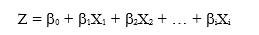Z = b0 + b1X1 + b2X2 + … + biXi