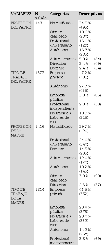 Además se recogieron datos relativos a los padres de los participantes; la Tabla 2 resume dicha información.