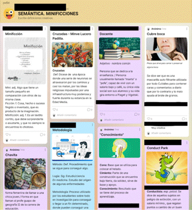 En el Padlet 3 el estudiantado escribió una definición creativa para trabajar el tema de semántica, cuyo requisito fue que debían utilizar un concepto trabajado en algunas de las materias de Educación o que se relacionara con sus asignaturas (Figura 3).