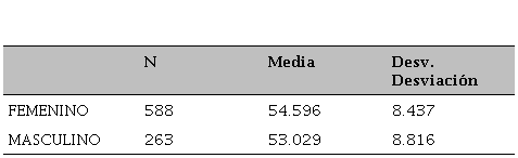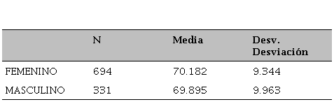 Continuando con los estudios realizados, se observó que el género no guardó relación con el rendimiento que los estudiantes obtuvieron en la prueba. La prueba de muestras independientes confirma este hecho, es decir, que el género no influye en el rendimiento obtenido en ninguna de las pruebas departamentales, ya que se obtuvieron valores de significancia p = .416 y p = .532 para Morfología y Morfosintaxis respectivamente. Los valores medios para ambos géneros pueden verse en las tablas 6 y 7.