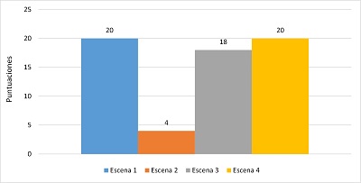 En la escena cuatro, los elementos que dificultan la traducibilidad son léxica con once puntuaciones y con dos puntuaciones se encuentra fonética, morfológica y morfológica/pragmática.