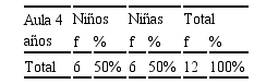 La población y muestra total es de 12 niños de 4 años del I.E.P. “Santa Ana” School – Chiclayo – 2018, distribuida de la siguiente manera: