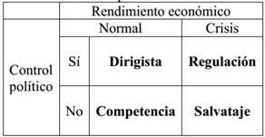 Las estatizaciones realizadas por coaliciones liberales serán de salvataje, ya que los objetivos de desregulación del mercado y privatizaciones liquidan los esquemas políticos de protección de la burguesía industrial y de los sectores populares -ambos ausentes de la coalición-, de modo tal que el Estado sólo se vuelve empresario temporariamente, orientándose exclusivamente a recapitalizar a los grupos económicos en crisis para reforzar la gestión privada de la producción y la distribución de recursos.