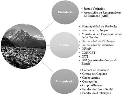 Al mismo tiempo, recientemente en el 2016, existió una experiencia que significó la más cercana a la articulación de acuerdos mínimos sobre la problemática. Surgió con la conformación de la Mesa de Gestión Integral de Residuos de Bariloche en la que confluyeron la Subsecretaría de Medio Ambiente de MSCB, la Asociación de Recuperadores Bariloche (ARB), el Ministerio de Desarrollo Social de Nación, la Fundación Arelauquen, la Universidad Nacional de Río Negro, la Cámara de Comercio Bariloche y Alliance SRL (grandes generadores). Actualmente la Mesa se encuentra desarticulada y sin continuidad por diversos motivos pero el principal es el sostenimiento de la falta de acuerdo entre actores sobre una visión mínima de la problemática.