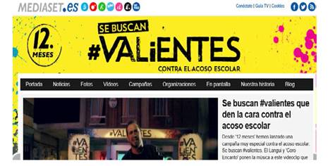La campaña -Se buscan valientes- contra el acoso escolar se convierte en un fenómeno viral. La viralidad y la transversalidad de la campaña ha sido patente desde su lanzamiento. Enmarcada en el proyecto social de Mediaset España, la campaña ya ha recibido más 3 millones de visualizaciones y un alcance superior a los 8 millones de vistas potenciales en RRSS (Cineytele, 2017).