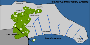 Nessas elevações do planalto santista, que ainda guardam vívidas referências arquitetônicas, culturais, linguísticas, religiosas da presença dos portugueses, “[...] cultivaram cana, essa mesma cana que acabou propiciando o surgimento de inúmeros alambiques no morro. E da famosa pinga, que virou patrimônio da cidade” (ABREU, 1982: s/p.). Essas marcas concretas e simbólicas densamente impressas nos morros santistas vão ao encontro da própria definição do conceito de território então explorada neste estudo, compreendido não unicamente como área física controlada para usufruto estratégico dos recursos naturais, como também um conjunto de referentes espaciais indissociáveis na criação e recriação cultural dos grupos. Como suportes plurifacetados e multivalentes circunscritos no espaço, são os territórios as vias imprescindíveis para o ordenamento e reprodução das identidades sociais e culturais (BONNEMAISON, 2002).
