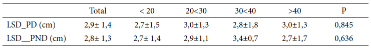 La Tabla 3 muestra los resultados en LSD con las medias y desviación estándar de los puntajes globales logrados en el LSD considerando la pierna dominante y no dominante, sin encontrar diferencias significativas entre los distintos grupos etarios de la muestra.