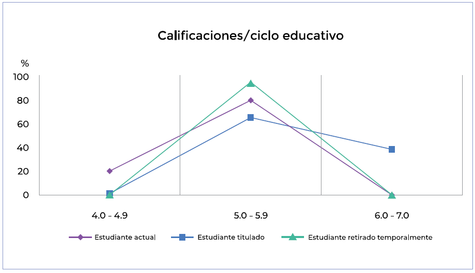 En el ámbito académico, el continuar estudios en la educación superior es un anhelo y una tendencia que se manifiesta en la totalidad de los deportistas, donde el 78,9 % son actualmente estudiantes. Pero, además, un 80% de éstos poseen un rendimiento académico sobresaliente. Esta dinámica de estudiar o estar ejerciendo profesión paralelamente a la práctica deportiva, corresponde al ideal del Head Coach y equipo técnico de esta disciplina deportiva, y que se expresa además con desempeño académico destacado (Figura 1).