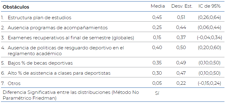 Identificación de factores obstaculizadores del proceso académico en deportistas federados y de elite en Chile