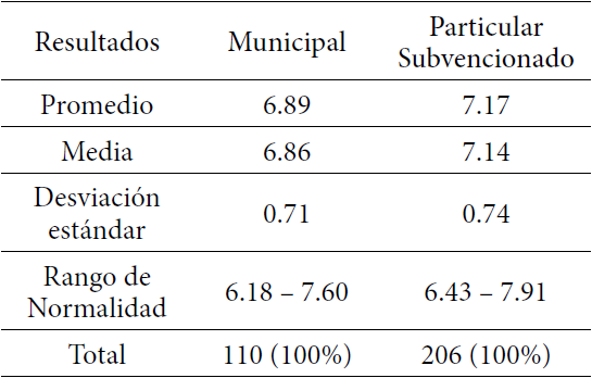 Para el análisis de los resultados se utilizó Microsoft Excel 2010. Se determinó la moda, mediana, media, desviación estándar de cada curso distinguiendo por sexo, edad y establecimiento, además, frecuencia nominal porque divide categorías equivalentes, es decir, hombres y mujeres, y establecimientos municipales y particulares subvencionado.