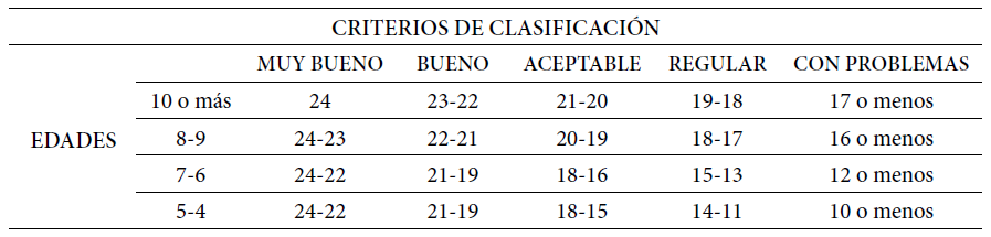 Donde el puntaje mínimo a obtener son 6 puntos y el máximo son 24 puntos que corresponde al total del puntaje y el mejor desarrollo motriz posible.