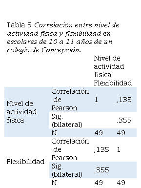 Correlación y comparación entre el nivel de actividad física y flexibilidad en niños y niñas de 10 a 11 años de edad de un colegio de Concepción. Chile