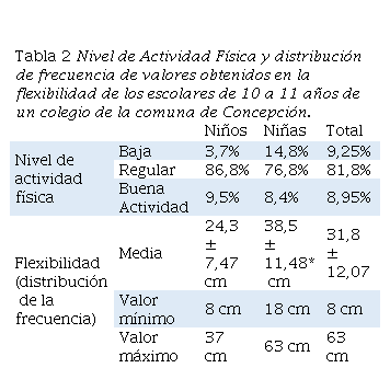 Correlation and comparison between the level of physical activity and flexibility in boys and girls from 10 to 11 years of age from a school in Concepción. Chile