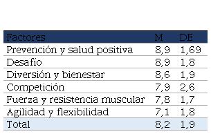 Galan & Ries (2019) concluyen que la práctica de ejercicio físico de los adolescentes se basa en los sentimientos y vivencias que perciben en el proceso de la práctica deportiva, teniendo como principales factores la revitalización y disfrute, fuerza y resistencia, desafío y competición, con los hombres obteniendo puntajes más altos que las mujeres en todos los factores.
