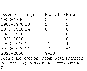 En la Tabla 1, se presenta la estimación del lugar que la delegación chilena podría conseguir en los próximos Juegos Panamericanos de Santiago 2023, a partir del modelo utilizado. Cabe destacar que dicha estimación mantiene una tendencia similar a la posición obtenida en ediciones pasadas (8° - 10°), principalmente a partir de la década de 1980.