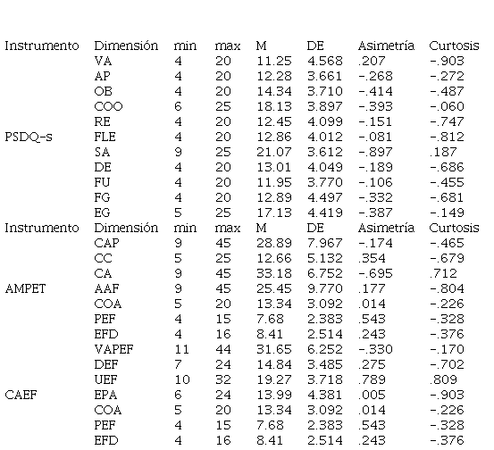 Los resultados muestran que ocho de las diez valoraciones más elevadas corresponden al instrumento del autoconcepto físico, entre ellas se destaca las dimensiones SA (M = 21.07; DE = 3.612) como la mejor valorada por los estudiantes, en este ámbito, los sujetos perciben como condición de buena salud enfermarse con poca frecuencia o recuperarse rápidamente. Paralelamente, la dimensión de OB (M = 14.34; DE = 3.710) se encuentra dentro de los cuatro resultados más altos; esta considera que los estudiantes se perciben sobre su peso ideal independientemente de su estado real. Lo relevante es destacar la percepción de los jóvenes respecto a su salud, enfatizando que existe una valoración positiva, independiente de su percepción física. Cabe destacar que otras de las valoraciones más elevadas son el CA (M = 33.18; DE = 6.752), que remite a la seriedad con la que los estudiantes se toman cada clase de la asignatura; COO (M = 18.13; DE = 3.897), enfocada en la percepción de capacidad de realizar movimientos coordinados y precisos; y EG (M = 17.13; DE = 4.419), es decir, el aprecio o sentimiento positivo que tiene cada alumno sobre sí mismo.