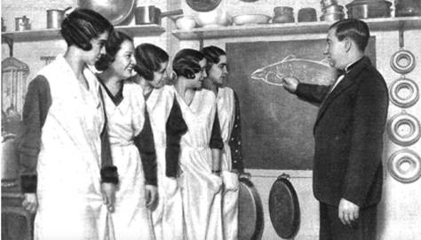 Durante el primer tercio del siglo XX, la educación culinaria española se dirigió a la mujer; en las escuelas, cátedras e institutos gastronómicos se inscribieron señoras y señoritas de elevada posición social, cuyo objetivo principal era lograr el dominio del arte culinario, pues en sus manos se hallaba la tarea de alimentar a la familia (Pérez Samper, 2012, p. 28; Pérez Samper, 1997, p. 122). Bien claro lo decía la Estampa: "nada hay como un estómago agradecido. Las casadas lo saben bien; las solteras, tan perspicaces siempre saben que eso es un encanto más" (14-1-1933, p. 5). En 1943, María Mestayer de Echagüe, la Marquesa de Parabere -gastrónoma, historiadora y cocinera de referencia-, confesaba no saber freír un huevo y cuando "vio que su esposo ponía toda clase de pretextos para no volver a casa al mediodía, quedándose a comer en el club, [...] el instinto de preservar su matrimonio, [...] la llevó a interesarse por los temas culinarios" (Echagüen y Echagüen, 2013, p. 18). La formación de estas mujeres se llevó a cabo en centros como la Academia de Cocina de San Sebastián, fundada en 1901 por Félix Ibarguren y Loreto Capella, exjefe este último de las cocinas de Alfonso XIII: "Las clases dedicadas al arte culinario que en San Sebastián existen, sería muy conveniente, para la moderna educación de la mujer, que se crearan en aquellos centros de instrucción donde con escaso gasto pudieran implantarse" (Nuevo Mundo, 5-3-1902, p. 16).