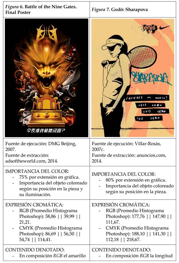 Los resultados extraídos y resumidos en el apartado previo de esta propuesta confirman la hipótesis planteada al inicio del trabajo. Las connotaciones culturales asociadas a determinados colores influyen en la composición de las gráficas publicitarias. Así, se puede observar, por ejemplo, que en Asia el uso del amarillo es importante para mitificar las marcas y alabar a los personajes que en ellas se incluyen, mientras que en Europa no es frecuentemente utilizado con las dimensiones de los orientales y se apuesta por "amarillos discretos".