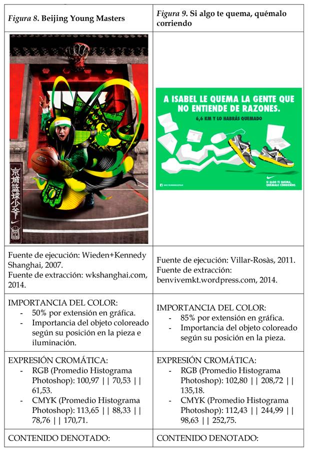 RESUMEN: Las diversas percepciones del color según cada contexto socio-cultural constituyen una cuestión de relevante interés desde el punto de vista de la creatividad publicitaria: el negro y el blanco son, por ejemplo, colores opuestos que significan luto en diferentes culturas, y que por tanto deben ser empleados con mucho cuidado a la hora de internacionalizar una campaña de Marketing. El color rojo es muy importante para llamar la atención del público occidental... pero en China es además signo de buena suerte. Lo que en sí mismo es un poderoso atractivo para muchos potenciales compradores. Por ello, en esta investigación se han analizado las posibilidades creativas que pueden derivarse de las connotaciones simbólicas y culturales de los colores. Para ello se ha propuesto un análisis comparativo en cuyo diseño se han considerado distintas teorías sobre las percepciones del color en dos culturas muy dispares: la europea y la asiática. Dicho modelo se ha empleado para analizar una muestra de campañas gráficas de Nike con el fin de obtener resultados que permitan corroborar, a través de este caso, que las grandes marcas utilizan la simbología cromática en el diseño de sus campañas gráficas con el fin de ampliar sus posibilidades de eficacia comunicativa.
