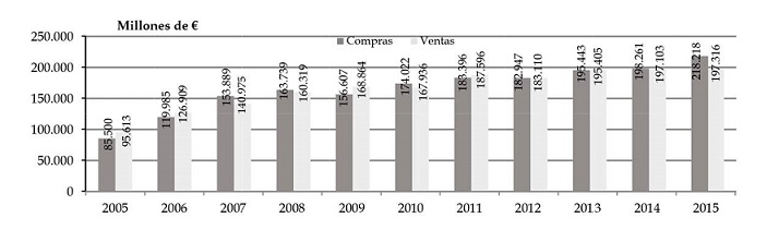 La web 2.0 representa la fase actual y se caracteriza por el protagonismo que otorga a lo social (Lacalle, 2011). La cuestión es si este carácter social contraviene la función comercial del modelo web anterior. Aunque con el modelo web 2.0 se potencia la interacción con y entre individuos, también se promueve que la Red simplifique los procesos comerciales de las organizaciones y el día a día de los consumidores. Por ello desde el punto de vista de la función comercial el modelo 2.0 no dista del 1.0. Prueba de ello son las cifras resultantes de las transacciones comerciales online desde la llegada del nuevo modelo (Figura 2).