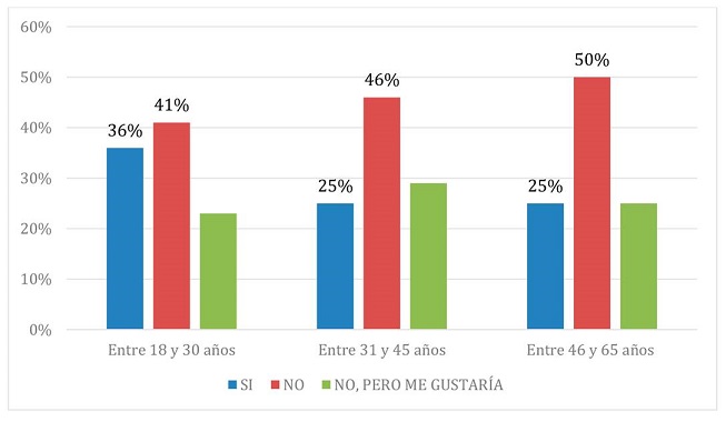 Pero realmente, ¿sabe la población qué acciones se llevan a cabo en la ciudad? La respuesta es que no, pero con un porcentaje significativo y esperanzador de que sí que le gustaría saberlo a la sociedad. En la Figura 10, observamos divididas por edades estas respuestas.