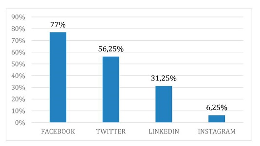 Dentro de este medio, el 77% de las entidades utilizan las redes sociales para acercarse a su público, siendo la más utilizada Facebook y las que menos Instagram, como demuestra el gráfico.