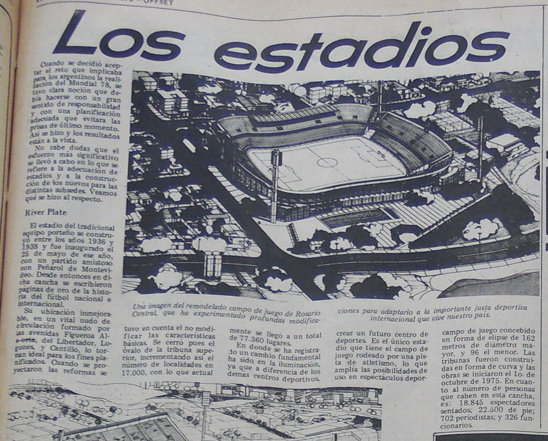 Muchos artículos resaltan el inédito desarrollo de infraestructura, como también los detalles modernos de estas obras, los cuales son entendidos como sinónimos de éxito y progreso. Durante uno de los primeros días de junio, el suplemento deportivo presenta los nuevos estadios y las modificaciones realizadas en los preexistentes. En una nota de ese ejemplar se afirma: