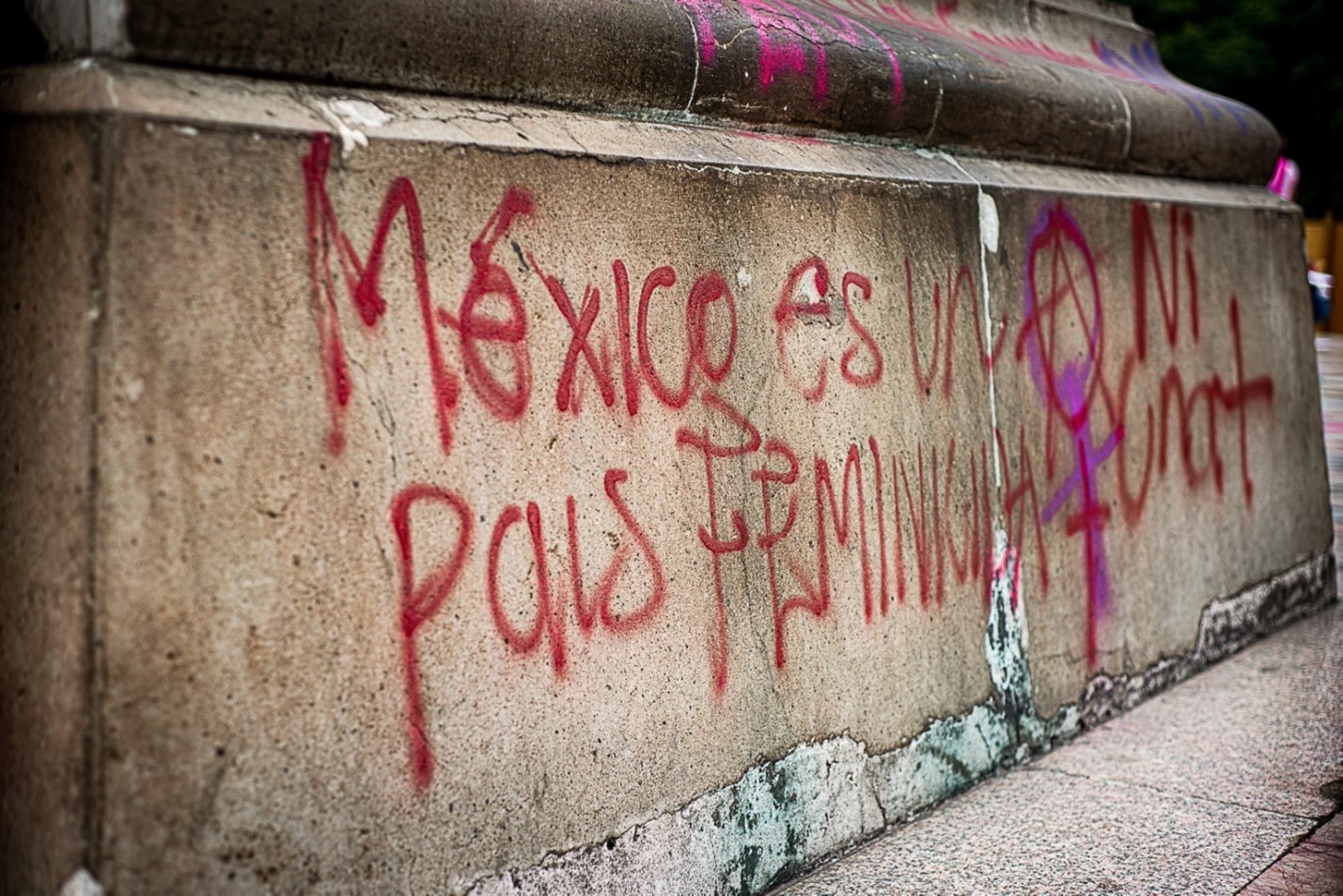 El grafiti “México es un país feminicida” ejecutado en la base del monumento del Ángel de la Independencia en el corazón de la Ciudad de México simboliza un acto agónico de enorme fuerza. El mensaje, de por sí impactante, se amplía en su significación por el soporte en el que se encuentra. Los antagonistas leen este grafiti como una trasgresión porque se pintó en un símbolo patrio del espacio público, dónde “la “victoria alada” conmemora originalmente la victoria en la lucha de México por su independencia. México es un país feminicida” desmiente el significado simbólico de libertad representado por el monumento. El colectivo feminista se apropia del monumento resignificándolo para la lucha por la independencia de las mujeres en un sistema opresor. Este acto inclina la balanza de fuerzas interpretativas entre agonista y antagonista produciendo una mayor agentividad para las demandas de las mujeres por la igualdad de género y una vida libre de violencia. Prueba de que la balanza está en su favor está en la conmoción de las reacciones en los medios de comunicación, en las instancias públicas como el congreso, el senado de la República y hasta en la presidencia.